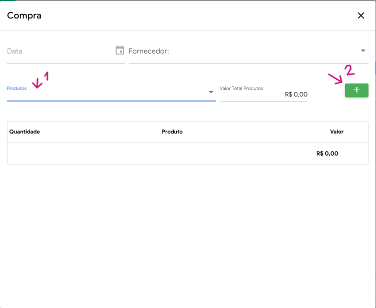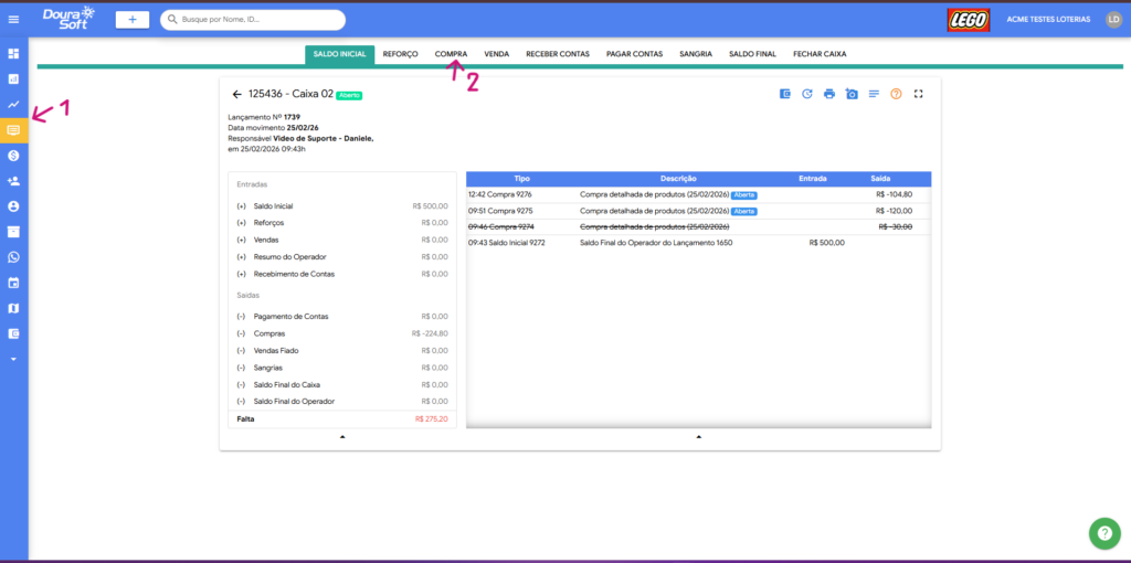 Tudo isso diretamente pelo menu de caixas, na opção Compra.