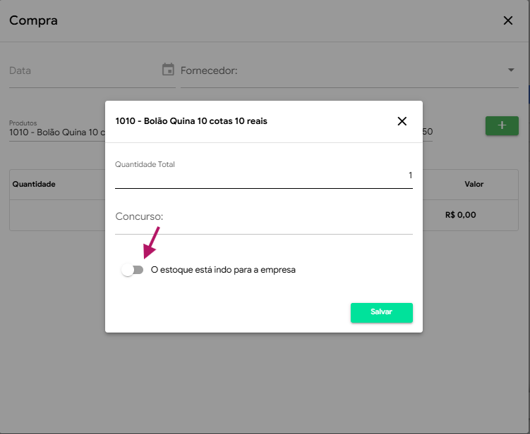 - Ao salvar, os produtos irão direto para o estoque da empresa
