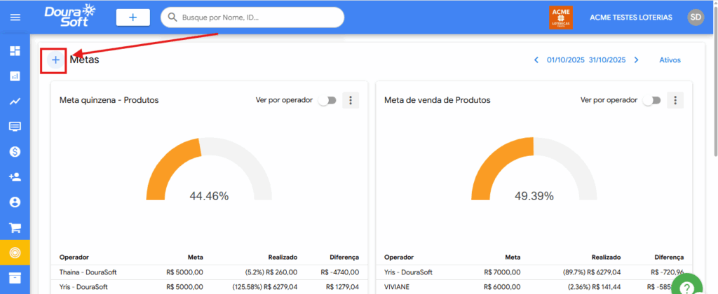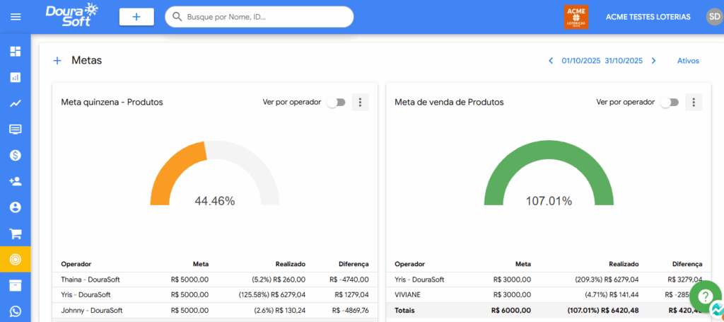 O Aplicativo de Metas é uma ferramenta do sistema que permite definir, acompanhar e analisar metas de vendas — em valor financeiro ou quantidade — para produtos, loterias ou serviços.