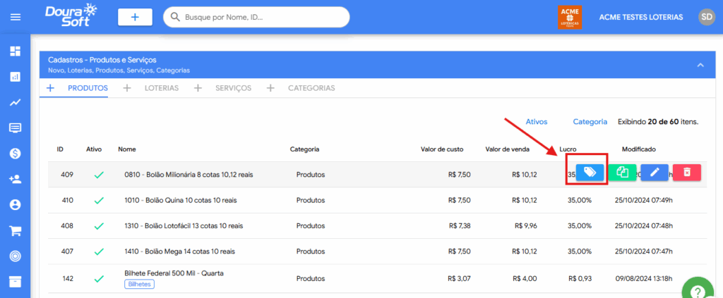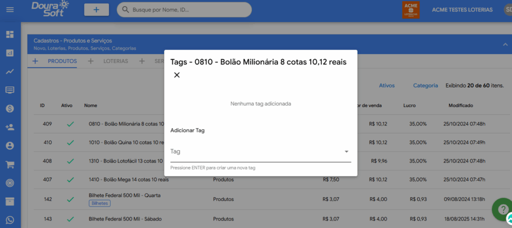 As tags ajudam a agrupar produtos, serviços ou loterias para facilitar a criação de metas.