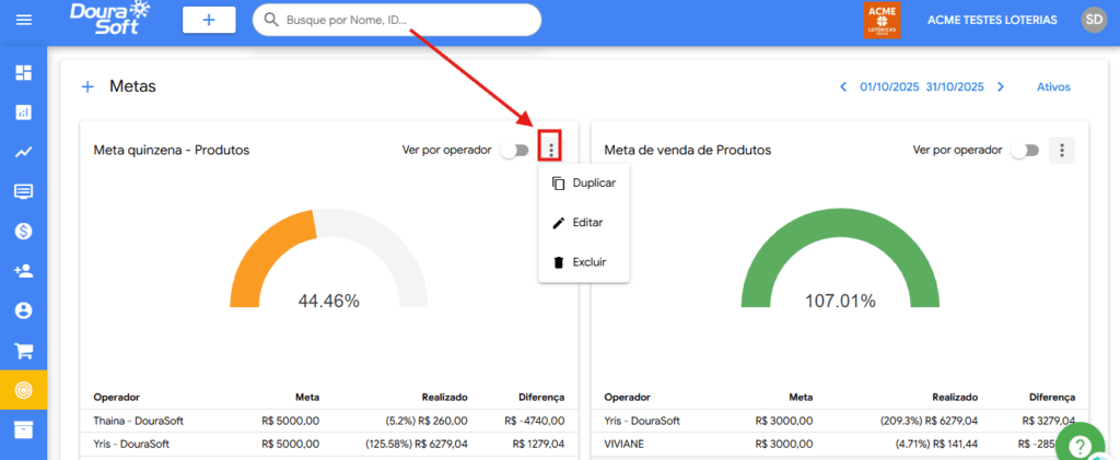 - Editar uma meta para ajustar operadores, valores ou períodos.