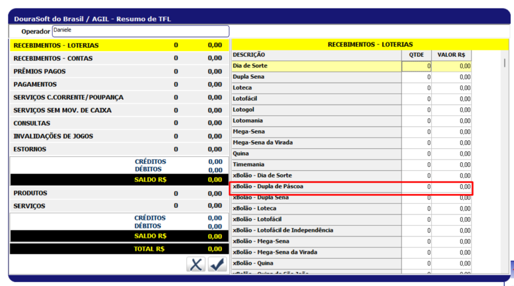 Ao preencher o caixa, você deve se certificar de que o Bolão – Dupla de Páscoa concurso 2940 está preenchido no Resumo do caixa na loteria xBolão – Dupla de Páscoa.