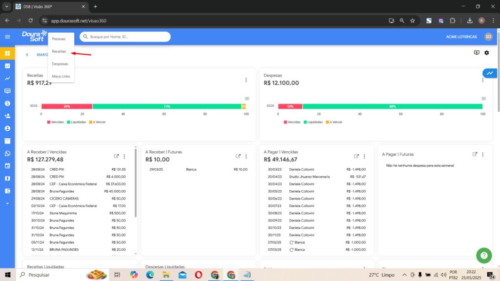 - Selecione a opção Receitas.